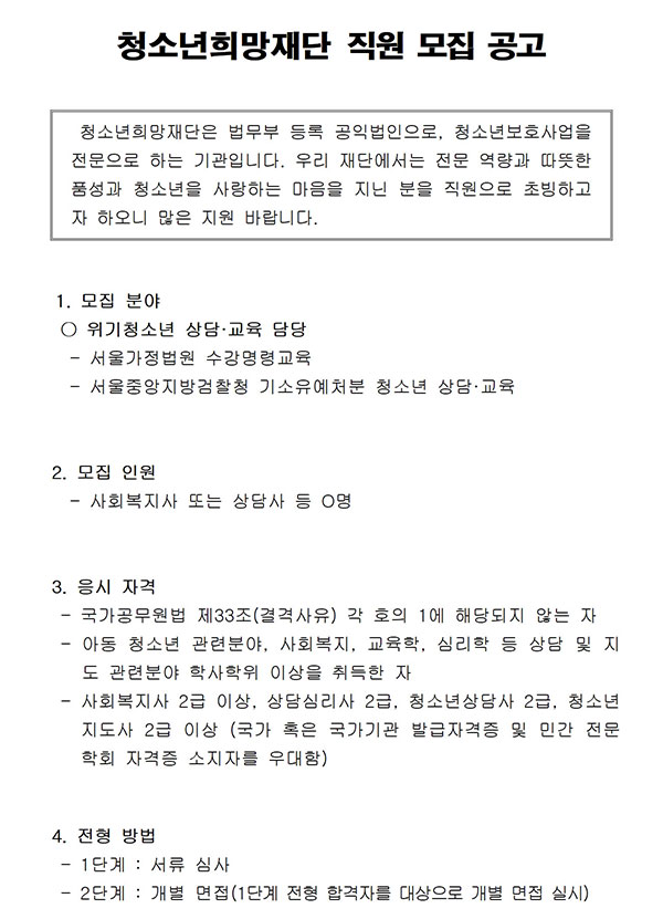 [Àç°ø°í] û¼Ò³âÈñ¸ÁÀç´Ü Á÷¿ø ¸ðÁý