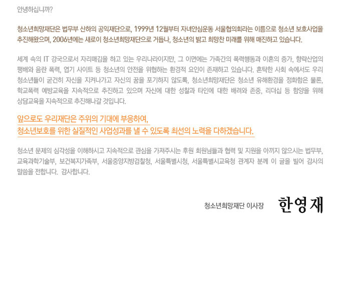 û¼Ò³âÈñ¸ÁÀç´Ü > Àç´Ü¼Ò°³ >